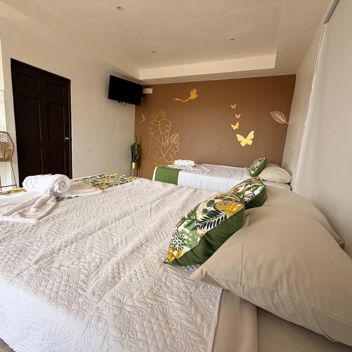 Elegantne ruum, kus on rahu ja vaikus, ümbritsetud loodusega, kus näed palju linde lendamas, ja kui sul on õnne, siis ka tuukaneid! Meie majutuskohas on kohviistandus, kus saab jalutada ja rada, kust avaneb ilus vaade! Rõdult avaneb vaade Rincon de la Vieja, Miravalles ja Tenorio vulkaanidele. Rahulikel hetkedel kuuled eemalt jõe kohinat! Oleme Santa Elena kesklinnast vaid 25 minuti kaugusel! Ootame sinuga kohtumist