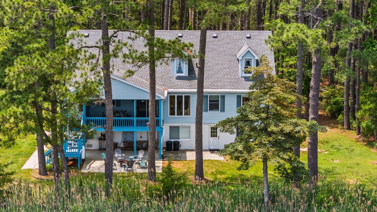 Your Rustic waterfront retreat on over 1.5 acre awaits! Stunning views throughout home, 150ft shoreline. Single level, accessible spa bath. Custom design, inspired by Frank Lloyd Wright. Renovated '24 with new furnishings. Induction stove, new GP nontoxic pans & more in new kitchen. Private, peaceful set within mature trees. Authentic ESVA experience. Conveniently explore the Shore. Fish, crab, kayak, birdwatch from private dock. Play piano or guitar. Plenty of space for all to relax & have fun!