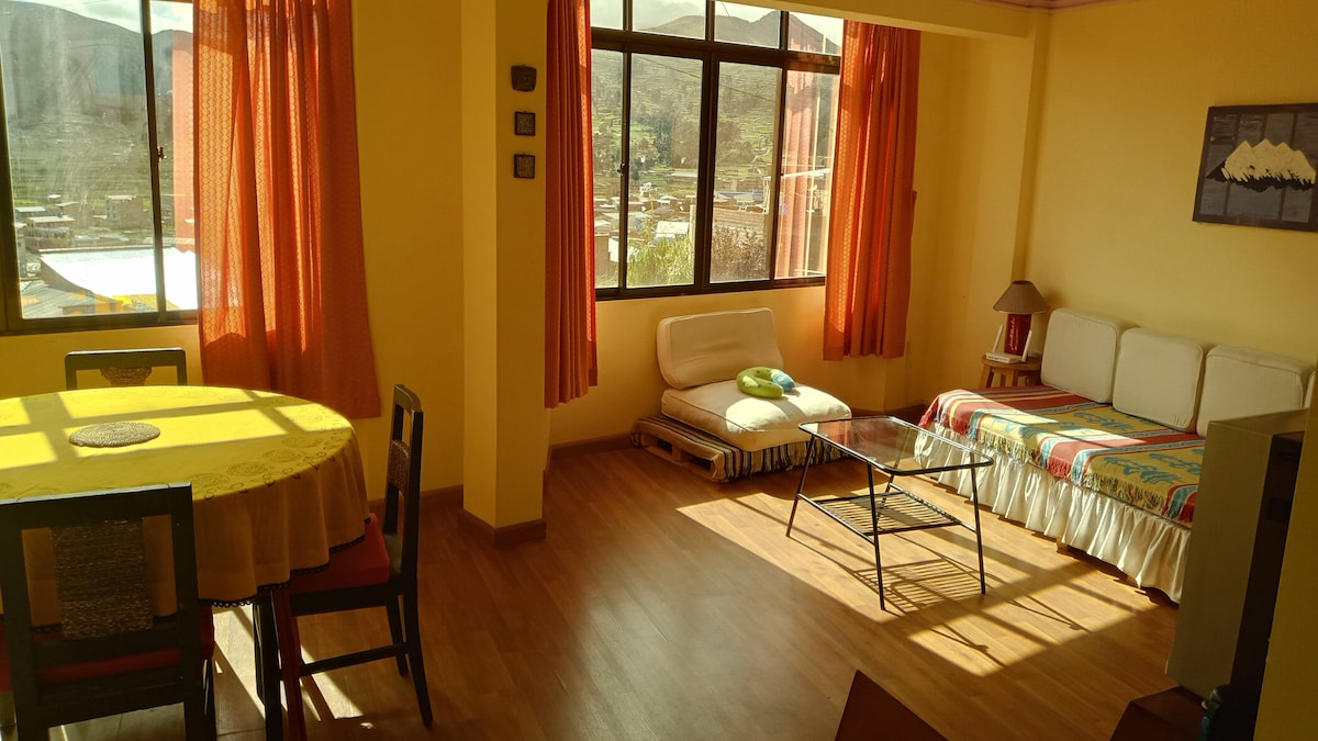 Lõõgastu selles ainulaadses ja rahulikus puhkepaigas. Me oleme Yumani kogukonna maamaja. Selles toas on privaatne vannituba ja imeline vaade järvele. Meie stiil on Aymara päritolu, esivanemate põlisrahvaste inspiratsiooni esemed ja maalid. Meil on restoraniteenus. Osalevad Martin ja Justina, kes annavad sulle parimad juhised Püha saare avastamiseks.