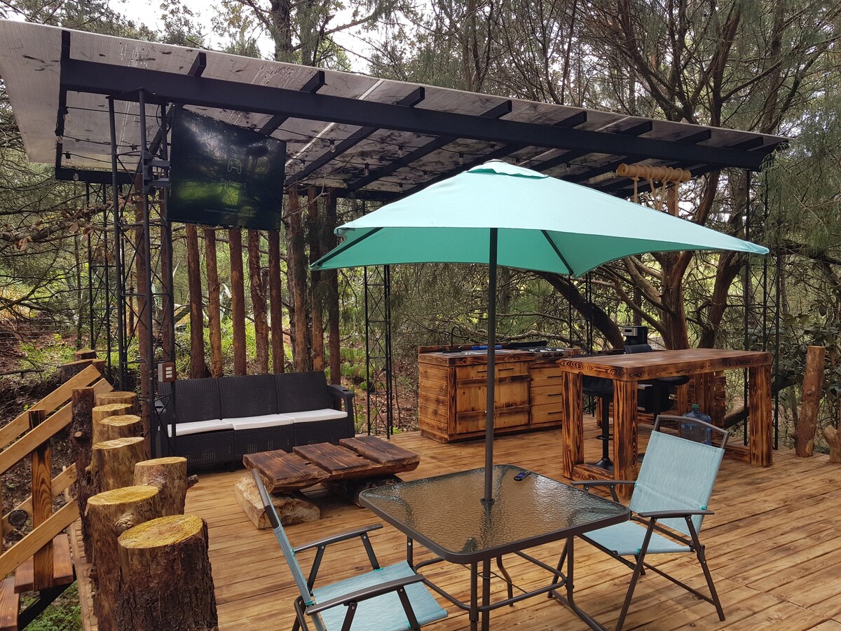 Ven y conoce la más bella cabaña Boutique del Parque Nacional del Chico, arquitectura moderna donde se funde el hierro, la madera y el barro cocido, en medio de un bosque rico en oyameles , ocotes y fauna silvestre. Un lugar lleno de quietud y paz que hará relajar tus sentidos y donde por las noches sentado al fuego de la chimenea y un par de copas de vino harán una velada romántica inolvidable o por las mañanas ver juntos el amanecer en nuestro increíble mirador hará de tu visita tu lugar ideal