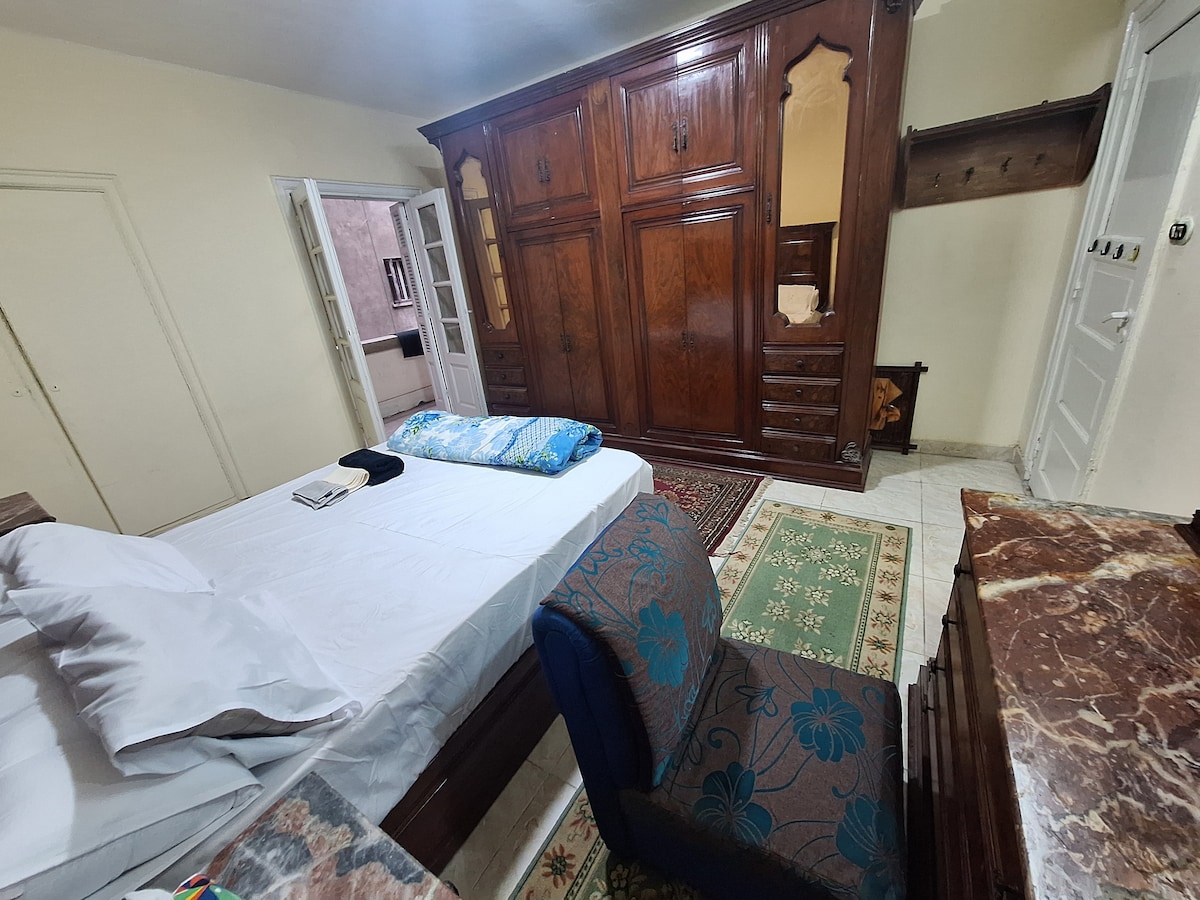 Ajalooline,nostalgiline ja hiilgav apartement, mis asub Kairo südalinna südames. Suur mugav elutuba, kus on 48-tolline nutikas teler,wifi,kohvinurk ja diivanvoodi, mida saab avada ühele lisaisikule,nautida väga päikesepaistelist vaadet ,täielikult laetud köök ja hubane vannituba. Hästi konditsioneeriga magamistoas on lisaks ilusale söögilauale mugav lai kaheinimesevoodi. Üksus on täiesti uus ja 3 mint Egiptuse muuseumi,Tahriri väljakule ja Niiluse jõele.
