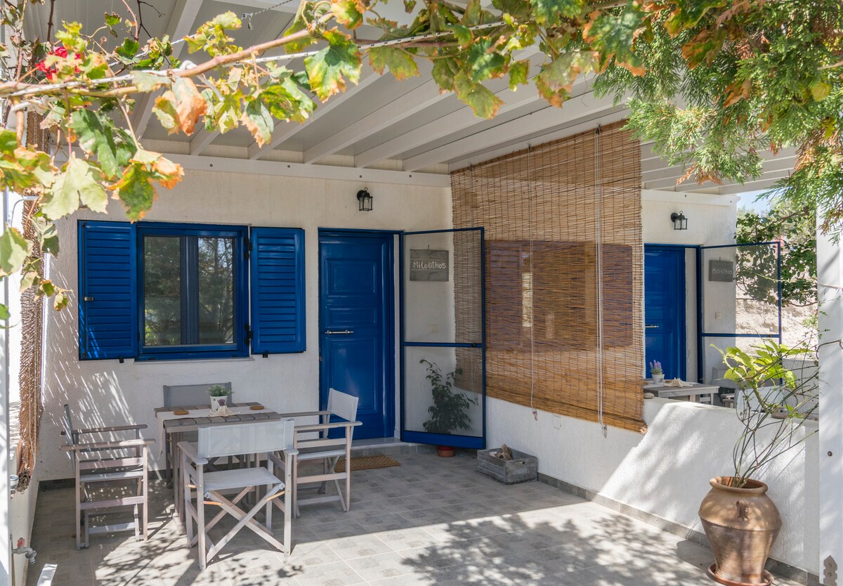 See täielikult renoveeritud ühe magamistoaga korter asub esimesel korrusel ja sellel on suur varjutatud väliterrass, kust avaneb vaade merele. See asub teiste traditsiooniliste valgete väikeste hoonete seas, mis pakuvad traditsioonilist kohalikku Kreeka saare helendust. Seal on kööginurgaga elutuba, libe kaasaegne vannituba ja eraldi magamistuba kaheinimesevoodiga. Elutoa diivan liigub mugava kaheinimesevoodi juurde. Sisekujundus on lihtne ja minimaalne koos näputäie looduse ja monokromaatiliste lõõgastavate värvidega