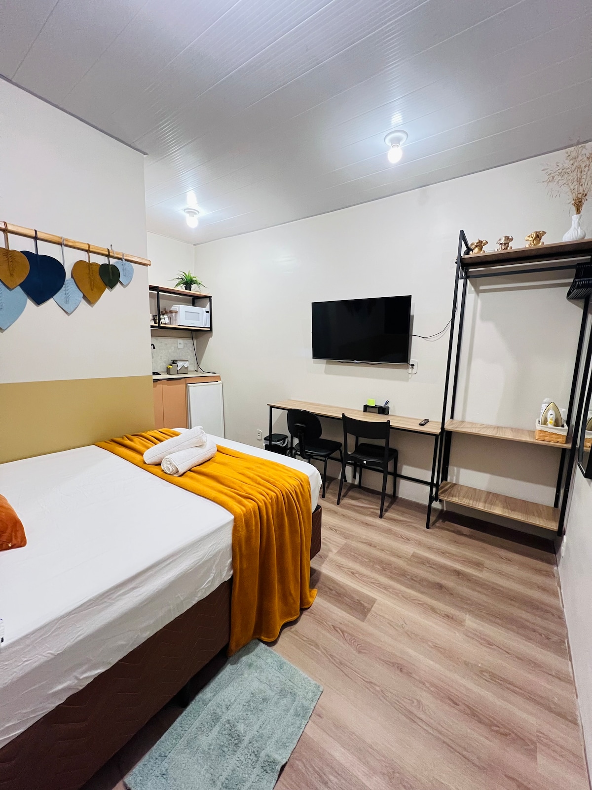 Acomodação confortável para até 4 pessoas, prática e muito bem localizada Você estará a poucos minutos do centro, aeroporto e cercado por padarias, restaurantes, farmácias, sorveterias e muito mais O ambiente é super equipado para te receber com conforto: 🛏️ Cama aconchegante 📶 Wi-Fi 🚗 Vaga para estacionamento ❄️ Ar-condicionado ☕ Cozinha com utensílios 🧺 Toalhas e roupa de cama limpas 🧼 Ferro de passar disponível 📺 Televisão disponível Tudo pensado para que você se sinta em casa