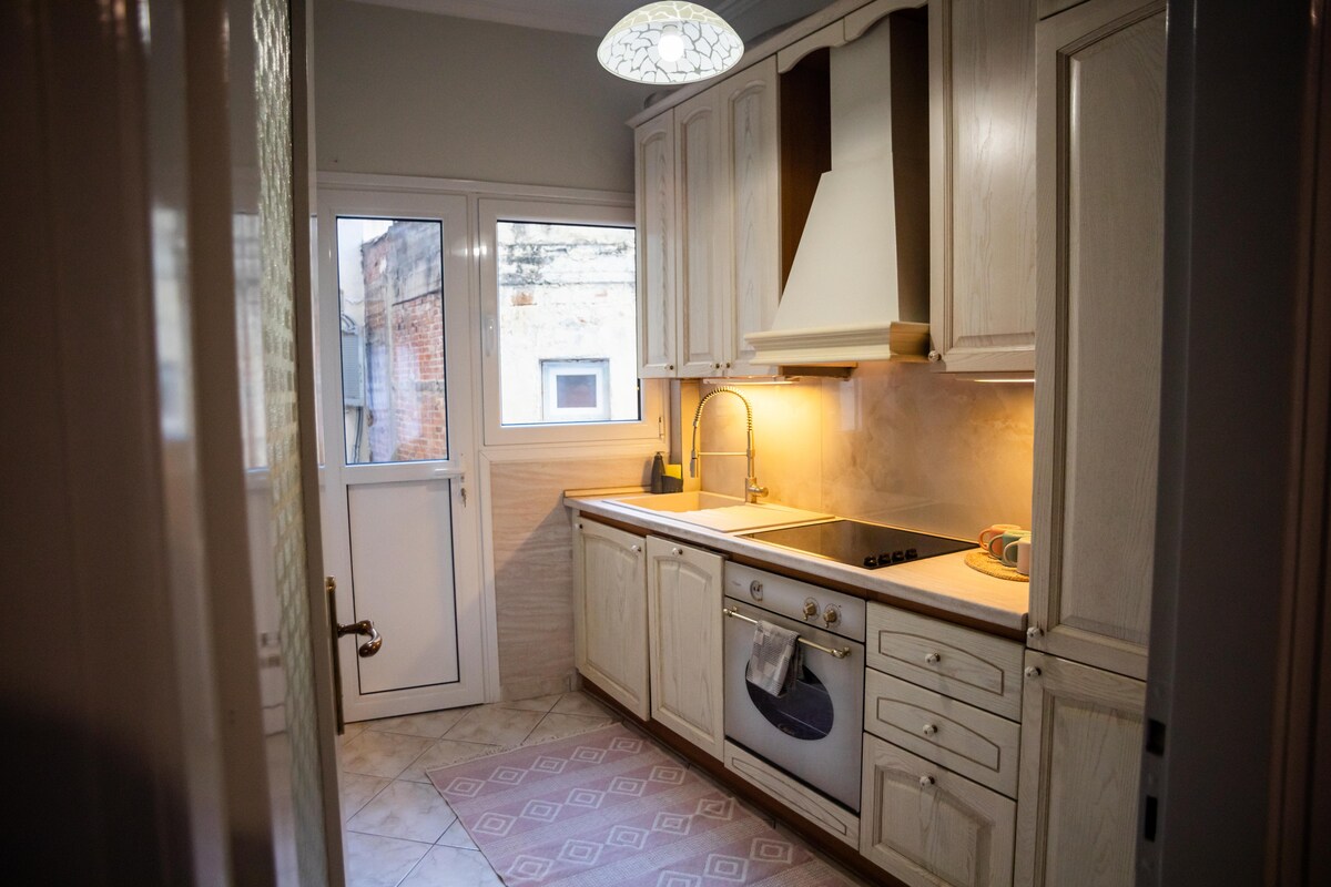 Kesklinnas asuv täielikult renoveeritud korter 6. korrusel. See asub linna südames, väga lähedal kõigile linna kuumadele kohtadele, rajatistele ja avalikele teenustele. Korteri lähedal on ka restoranid, kohvikud, supermarketid jne. Majutuskohas ei ole parkimiskohta, kuid saad tasuta parkida hoonet ümbritsevatel teedel. Lähim tasuline parkla asub 100 m kaugusel (PARKING ΟΥΗΛ A.E.) Veli & Anthimou Gazi tänaval.
