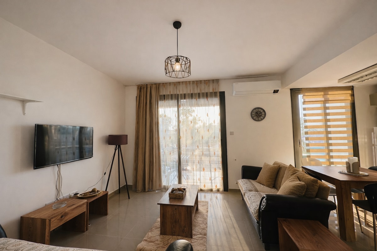 🛋️ Spacious living room with plush seating ☕ Equipped kitchen – perfect for easy meals or late-night snacks ❄️ Air conditioning in every room 🕯️ Elegant, calm vibes 🚶♀️2 Mins Dereboyu - Ledra Palace Border Crossing ☕️ ☀️Sunny balcony vibes 🍽️☕️ 5 Minutes to Zahra Street Just in the heart of Nicosia! Modern-minimal design, flooded with natural light and styled for comfort. Super close to everywhere you can want in Nicosia! ✨ • Located in the North of Cyprus • Whole house - No sharing