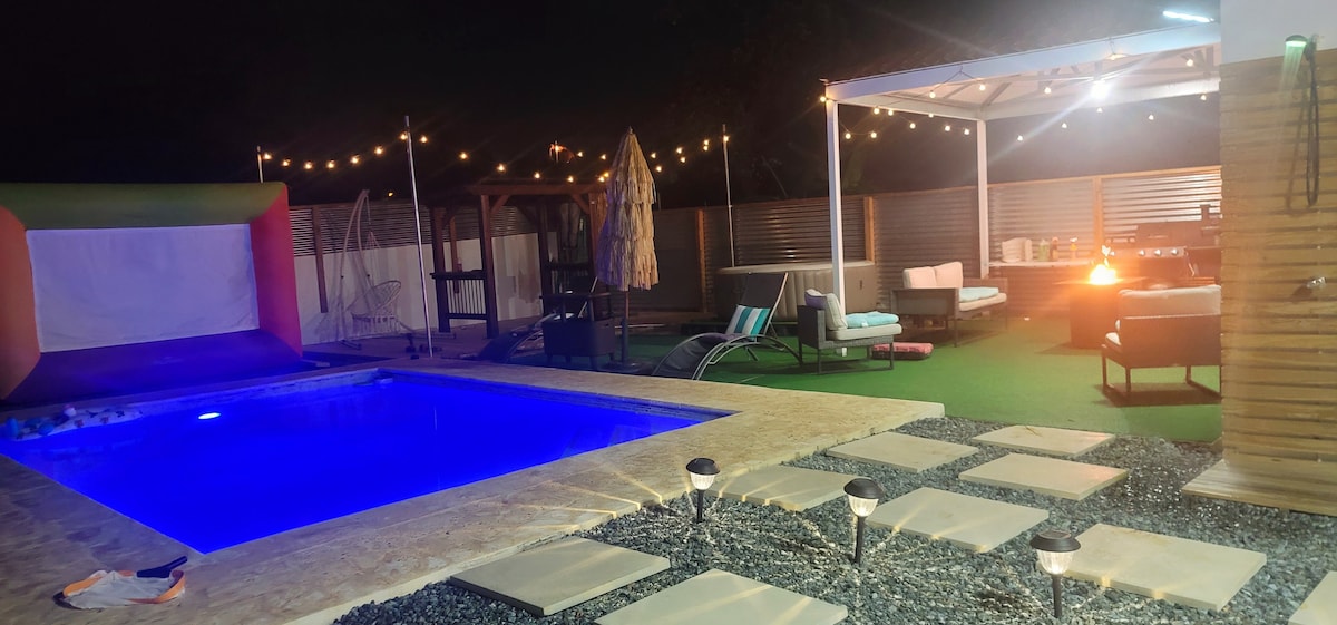 elukoht, mis asub aguadillas Playa kokkupõrkepaadi lähedal 5 min kaugusel lennujaamast ja paljudes restoranides on elutoas pesumasin-kuivati õhk ning kõik magamistoad king ja tv 65 Teine magamistuba kaheinimesevoodiga ja kolmas magamistuba narivoodi ja võrevoodiga. Suur autovarjualune kahele autole ja tarastatud garaažiuks. Ümmargune köök, kus on wifi ja alexa süsteem, bassein, grill, massaažilaud, täiesti privaatne, vaikne koht ja ligipääsetav puhkusele, randadele, supermarketile jne.