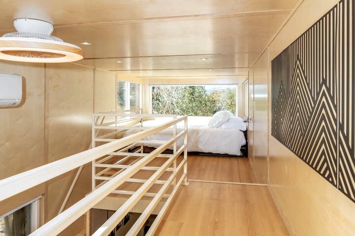 Enjoy tranquility in our Tiny House located on a rural mountaintop ridge, offering amazing sunsets! 400 sqft, two-story mini haven boasts an upstairs loft with 2 queen beds, fully stocked kitchen, bathroom, cozy living room & panoramic windows offering awe-inspiring sunsets. We are a scenic 24 mile drive from Yosemite's South entrance, 15 miles to Bass Lake and approx 8 miles to downtown Oakhurst. Features include all modern comforts, an outdoor grill, deck, firepit and high speed Internet!