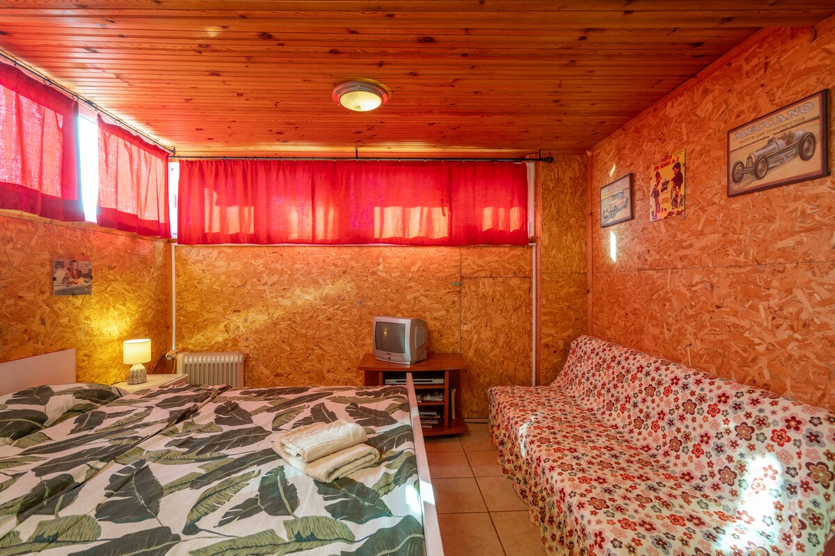 Located between 2 villages, in the suburbs of Thessaloniki, our attic guestroom offers a quiet stay in the countryside, ideal for people who love nature (and animals:). Public transportation to the airport, beaches, center of Thessaloniki. There are many close by beaches that you can go swimming (10-15 min by bus). There is a super market in 10 minutes walking distance from the house! The room has a double bed and a sofa-bed.
