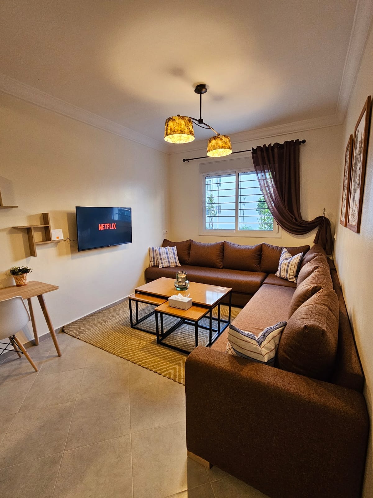 ✨️AUKARIKAS✨️ Lõõgastu selles vaikses ja stiilses majutuskohas. Kena korter Tangieri SUURE STAADIONI LÄHEDAL Meeldiv ja rahustav korter koosneb elegantsest päikesepaistelisest elutoast ühe magamistoaga (uus voodi 180) Vannituba on puhas ja funktsionaalne Täiuslikult varustatud, vaikne ja täis kookonilist atmosfääri, see on ideaalne baas äri- ja puhkusereisijatele