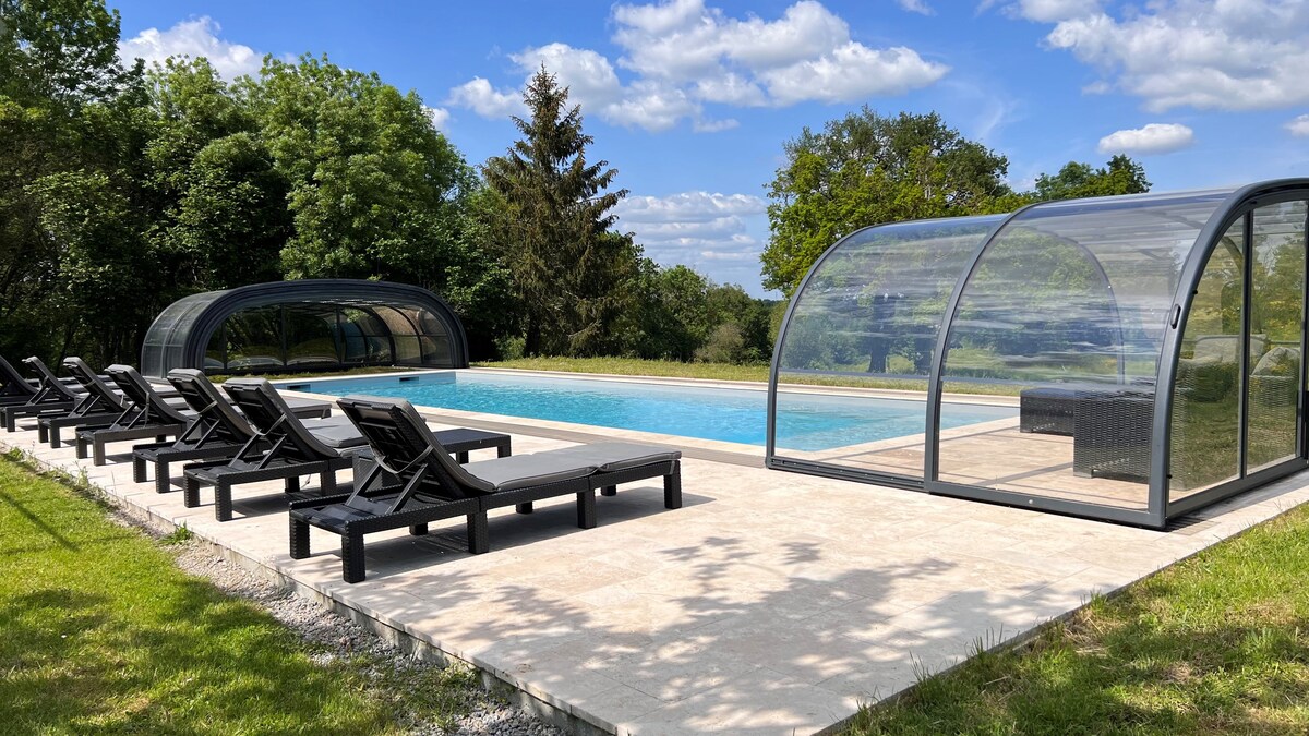 Erakordne villa 15 inimesele, kus on soojendusega bassein, mullivann, saun, bocce väljak, wifi, voodi ja vannilinad, sisaldab koristamist, privaatne parkimine. Meie Aizenays asuv villa tervitab sind avaras ja mugavas keskkonnas, mis sobib ideaalselt kokkutulekuteks peredele või sõpruskondadele. Endine talumaja, mis on täielikult renoveeritud ja laiendatud kaasaegse laiendusega, pakub 300 m² eluruumi, mis pakub unustamatuid lõõgastumise ja sõbralikkuse hetki.