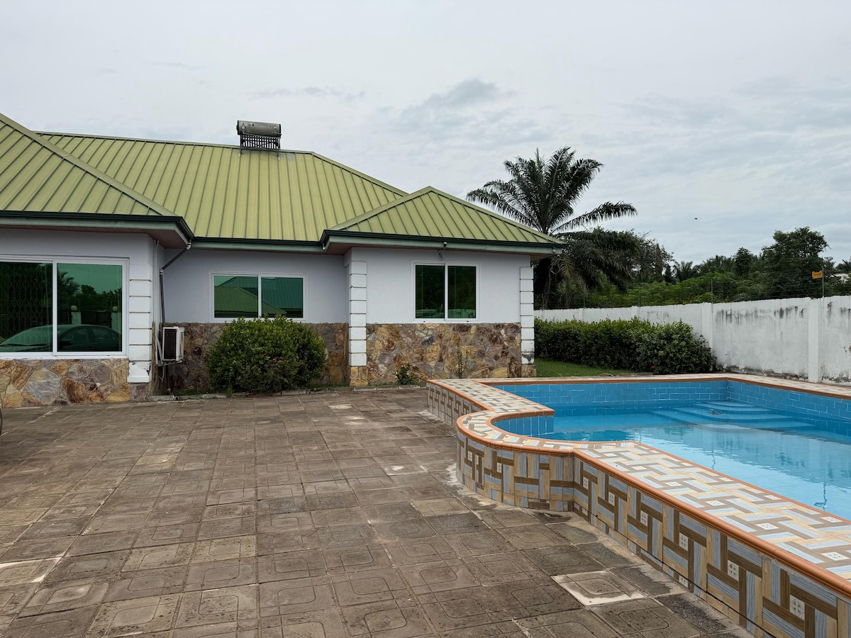 See armas, kaasaegne ja ruumikas Akosombo maapiirkonna villa on ideaalne puhkusereis perele ja sõpradele või mugav baas ärireisijatele. Põgene Accra kära ja kära selles majesteetlikus, täielikult varustatud kodus väljaspool kodu!