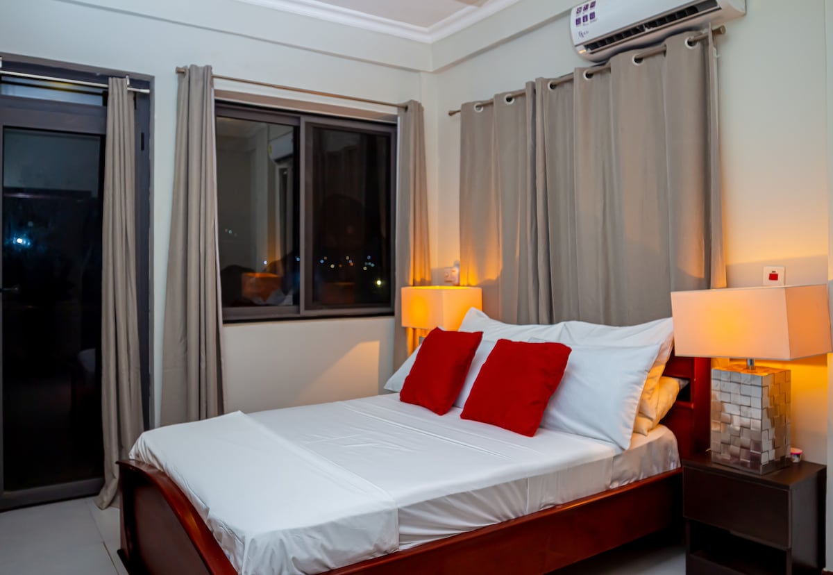 Tere tulemast oma taskukohasele linnapuhkusele Accra linnas! Hämmastava vaatega Aburi mägedele, vaid mõne minuti autosõidu või 15-minutilise jalutuskäigu kaugusel. Alla 12 miili kaugusel lennujaamast, otse M4-l, pöördeta. Meie kahe magamistoaga korter pakub rõõmu ja mugavust ööpäevaringse valvega, ööpäevaringset elektrit ja vett, eksklusiivsete mugavustega, nagu bassein, katuseterrass, kaasaegne jõusaal, täisköök, wifi, grill ja palju muud, mis muudavad sinu peatumise tõeliselt unustamatuks.
