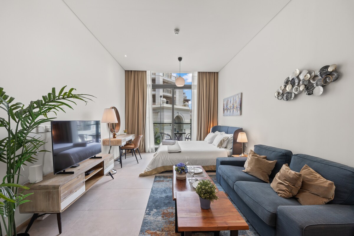 Tere tulemast sellesse elegantsesse ja rahulikku stuudiosse, mis asub JVC südames. Selles loomulikus valguses ja kõrgete lagedega hubases majutuskohas on queen-suuruses voodi, diivanvoodi, täielikult varustatud köök, nutikas teler, kiire wifi ning sisseehitatud seinafunktsioonide ja LED-valgustusega esmaklassiline mööbel. Naudi privaatset rõdu ja juurdepääsu elukoha mugavustele: bassein, jõusaal ja laste mänguväljak. Teisel pool tänavat on suur park spordiväljakute, mänguväljakute ja rohelise promenaadiga.