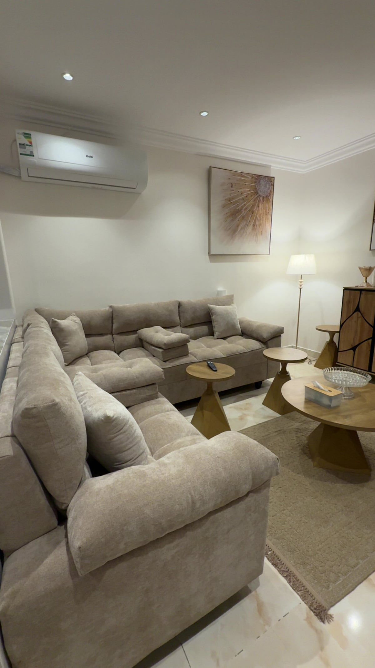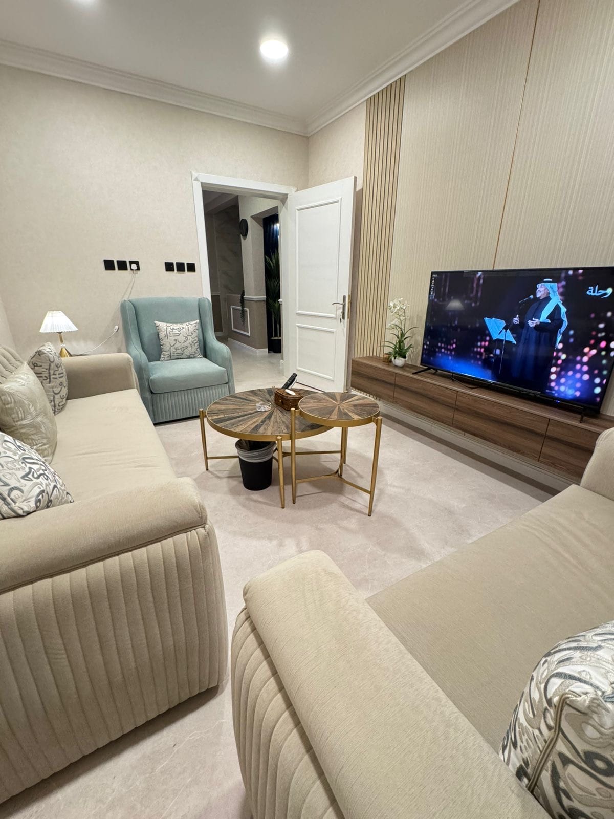Selles vaikses kohas ole rahulik ja lõõgastu koos perega. See koosneb kahest magamistoast, koridorist, köögist ja kahest vannitoast. Ühes toas on suur voodi ja vannituba. Teises toas on kaks eraldi voodit. Saalis on internetiühendusega nutikas ekraan ja seal on tasuta VIP-tellimus. Köök on täielikult varustatud ja seal on (pesumasin, külmik, ahi, mikrolaineahi, veekeetja). Pakume vannitubades isiklikke hügieenitarbeid. Korteris on automaatne õhuvärskendaja. Mul on au sind majutada ja soovin sulle õnnelikku peatumist.