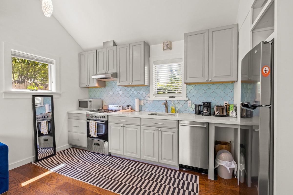 ** ESILETÕSTETUD Sunset Magazine 'is ** Meie valgusküllane kaasaegne külalistemaja, millel on privaatne juurdepääs, ootab sind. Puhka linnast meie mugavasse ja puhtasse casitasse. See armas, valgusküllane ruum asub meie pere kodu taga meie aias värskete marjade ja sidrunitega. Naudi hommikukohvi puidust talulaua taga. Pakume kohalikku kohvi + teed, väikest külmkappi, hommikumantleid, wifit ja välisööki. Meie vaikne tänav on BARTI lähedal, 3 kvartali kaugusel College Ave 'ist, täis suurepäraseid restorane ja kauplusi.