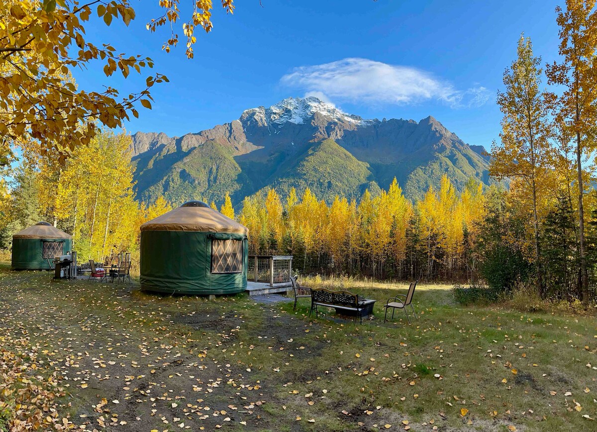See 16-meetrine jurta sobib ideaalselt neile, kes külastavad Denali parki, soovivad täielikku vaadet Denalile ja kellel on 360-kraadise vaatega vaid mägedele, jõele ja metsale! Jurta on pargi sissepääsust vaid 29 miili kaugusel ning see on varustatud voolu, propaaniahju, tulede, toyo pliidi küttega temperatuuri reguleerimiseks, puukamina ja puidust ostmiseks (10 dollarit komplekt). Kõrgel olles võid uksest välja kõndida suurepäraste vaadete juurde ja kui ilm on selge, avaneb täielik vaade Põhja-Ameerika kõrgeimale mäele!
