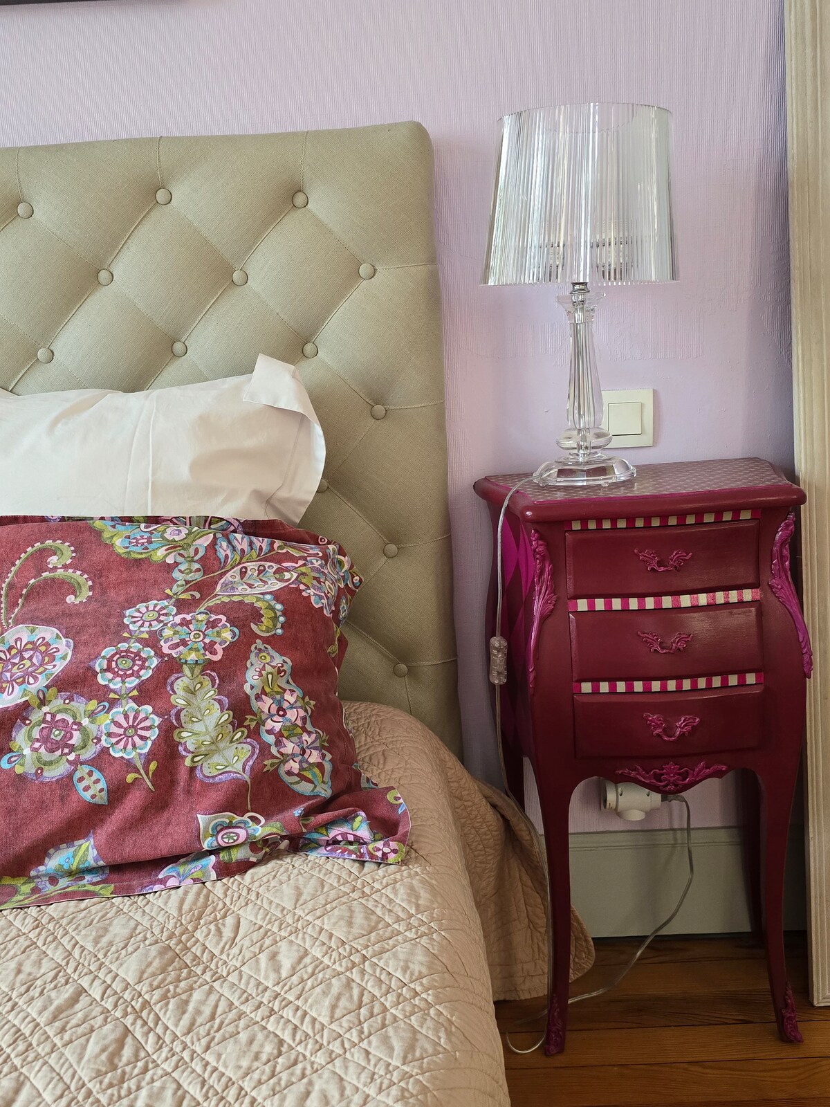 Armunud iseloomuga mõisasse, Fabienne tervitab sind oma Art Deco mõisas, kus ta elab koos oma abikaasaga. Hoone on konditsioneeriga. Hõivatud on 21 m2 suurune tuba, mis viib terrassile. Sinu voodipesu laius on 1,60 m ja pikkus 2 m. Olemas on ka väike 1,20m pikkune väikelapse voodi. Sõltuvalt sinu sõiduki suurusest saame kohapeal majutada sinu auto oma privaatses ja turvalises garaažis.