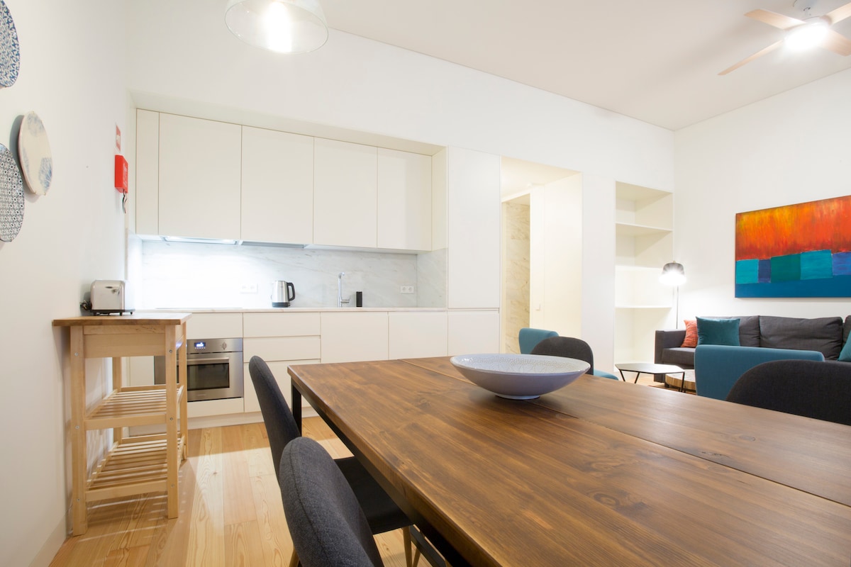 Sea end sisse lugemisnurka pärast päeva Lissaboni tänavatega tutvumist. See korter asub ajaloolises 18. sajandi hoones, mis renoveeriti 2016. aastal. See saab kasu kaasaegsest disainist, mis järgib kaasaegseid ja lihtsaid jooni. Korter on täielikult renoveeritud ja asub Lissaboni südames. Korterist leiad kõik mugavused ja mugavused suurepäraseks lühikeseks või pikaks peatumiseks Lissabonis ning mahutab 4 väga mugavalt. Seal on magamistuba kahe voodiga ja elutuba ülemõõdulise diivanvoodiga ja kahe voodiga. Saad juurdepääsu kliimaseadmele, küttele, traadita internetile, kaabeltelevisioonile, iPodi dokile muusika jaoks, täiesti uuele köögile, mis on varustatud nõudepesumasinaga, pesu-/kuivatamismasinale, külmikule, kohvimasinale, apelsinimahlapressile, veekeetjale, ahjule. Vannitoas on föön ja kõik mugavused. Magamistoas on väga suur garderoob, kuhu kõik oma asjad panna! Korteri sisekujundus järgib kaasaegseid ja lihtsaid jooneid, et saaksid end mugavalt tunda. Juurdepääs kõikidele korteritele Me oleme alati saabumisel kohal. Korter asub Lissaboni kesklinna südames, kus on suurepärased kohvikud, supermarket, metroo, rongid, trammid ja jõgi lähedal. Seal on lihtne juurdepääs parklale, supermarketile ja maitsvatele pagariäridele ning restoranidele. Leiad korteri lähedalt kõik. Tänaval on supermarket 2 minutiga, restoranid ja pagariärid 1 minutiga, parkimine (tasu tunni või päeva ja nädalavahetuse ja öö eest tasuta). Tramm nr 28 möödub vaid 50 m kaugusel ja metroo Baixa/Chiado 10 minuti jalutuskäigu kaugusel. Loss, kirikud, Praça do Comércio... ja kõik suurepärased vaatamisväärsused, kuhu jalutada jõuad. Külasta Sintra küla. Saad rongiga sõita, vaid 10 minuti jalutuskäigu kaugusel rongijaamast. Cascais 'ja randade külastamiseks võid kõndida 15 minutit rongijaama. Oleme oma külalistele ööpäevaringselt saadaval!