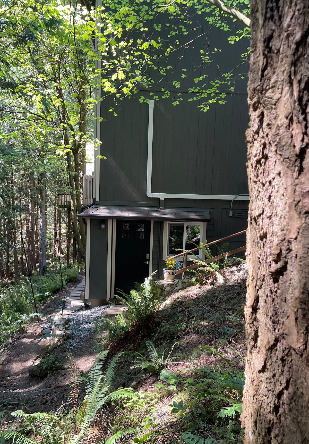 Breathe easy in the trees in our lovely little guest space — located on the bottom floor of our house. We're located 5 minutes from some beautiful trailheads for hiking, and 10-15 minutes from Fairhaven and Bellingham for food, shops, etc. A cozy nook to shower, write, reflect, drink some tea or coffee, and get a good rest before your next adventure. California King bed, full kitchen, shower and bathtub, with epsom salts if you want to soak after a long day.