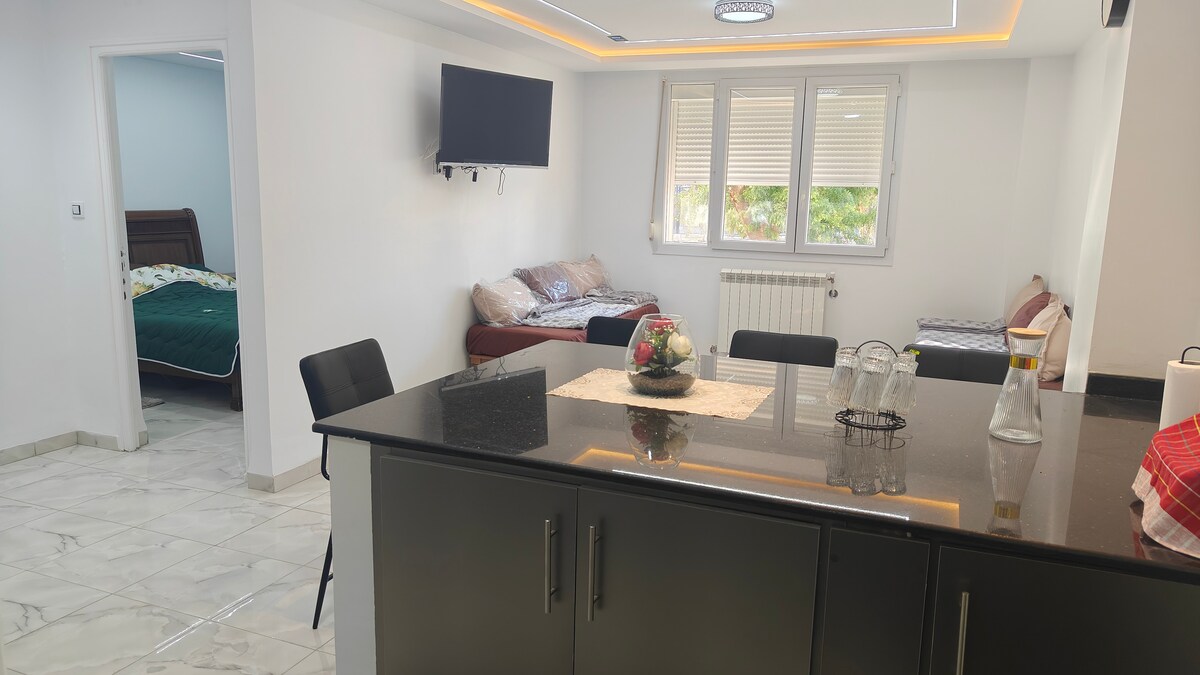 Tere, 👋 Résidence Nelson pakub 3. korrusel asuvat 130 meetri pikkust F2-d 3 terrassiga, kust avaneb vaade kogu linnale ja eriti Alžiiri suure mošee minaretile. See on muljetavaldav. Elukoht asub 20 minuti kaugusel Alžiiri keskusest ja 10 minuti kaugusel lennujaamast, 10 minuti kaugusel rannast, mugav liivarand Alžiirisse jõudmiseks. Majutuskohas on tasuta wifi, lameekraaniga telerid. 43 push 2, kliimaseade, külmik, mikrolaineahi, kohvimasin, espresso, pliit, pesumasin