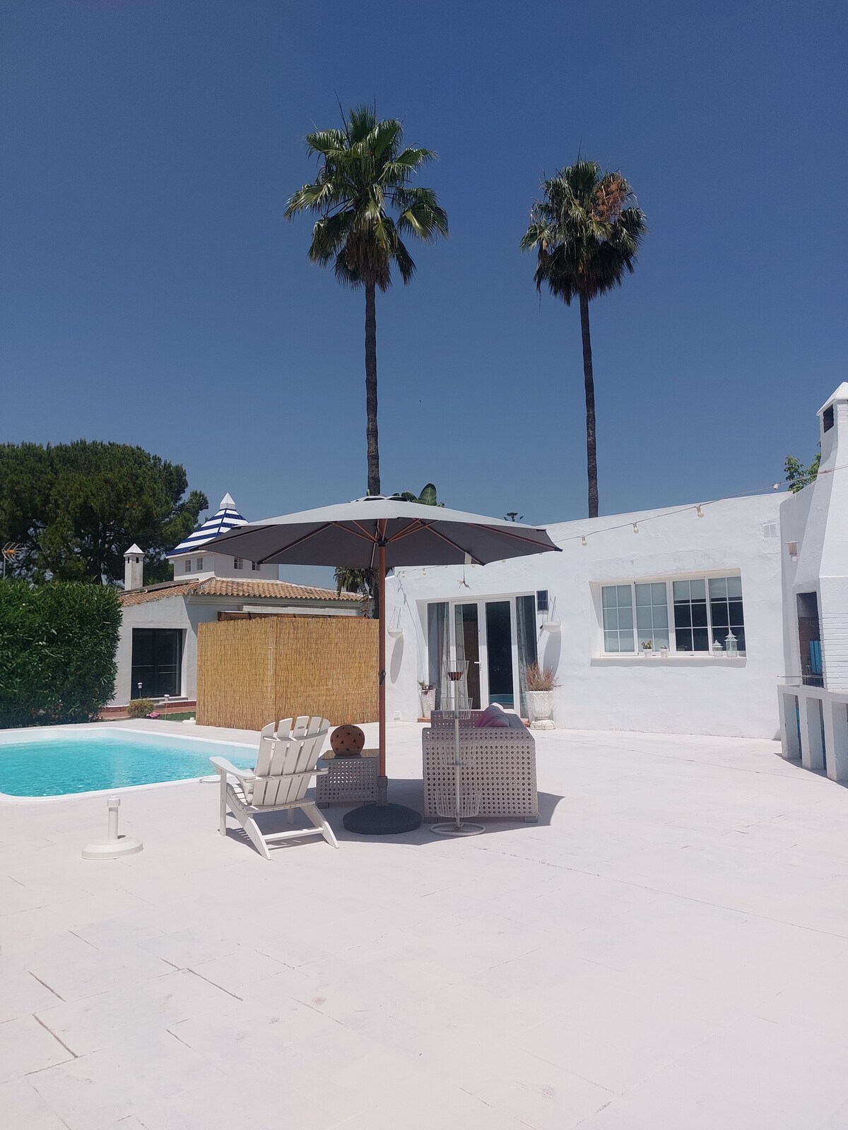 Selles majutuskohas saad hingata rahulikkust ja nautida kõige ilusamate päikeseloojangute loodust, mida ette kujutad suurepärase taevaga. Ainult 20 minuti kaugusel Sevilla kesklinnast ja 50 minuti kaugusel Cádizi randadest See on väga mugav lihtne ja elegantne maja, mille välispind kutsub sind välja ja ujuma oma ihaldatud basseinis. mis on mõeldud isiklikuks kasutamiseks ja keegi ei näe kõikjalt, kus kõik on privaatne bassein ja grill