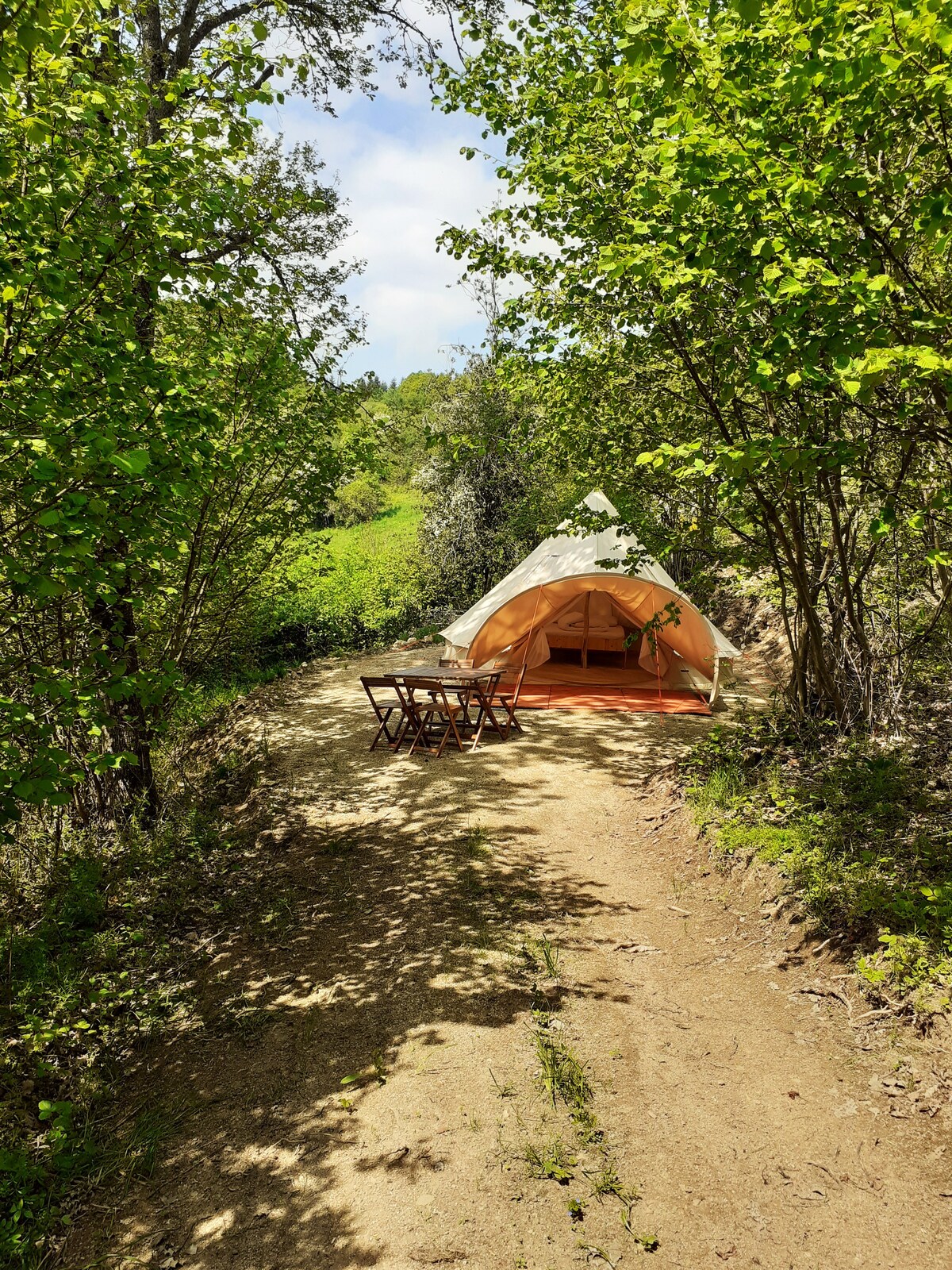 Kaugel mürast või visuaalsest häirimisest... Privilegeeritud ruumis, tähelepanuväärses tamme- ja pöögimetsas, 5 km kaugusel suurepärastest ujumisnurkadest, 950 m merepinnast ja 3 km kaugusel GR73-st; Tule ja avasta kämpingupiirkond, mis on puude jaheduse all. Sinu jaoks on valmis pandud majake, kus on kuivad WC-potid ja soe dušš. Külalised saavad nautida köögivilju ja talutooteid (munad, mesi, moos, kastanikreem ja õunamahl).