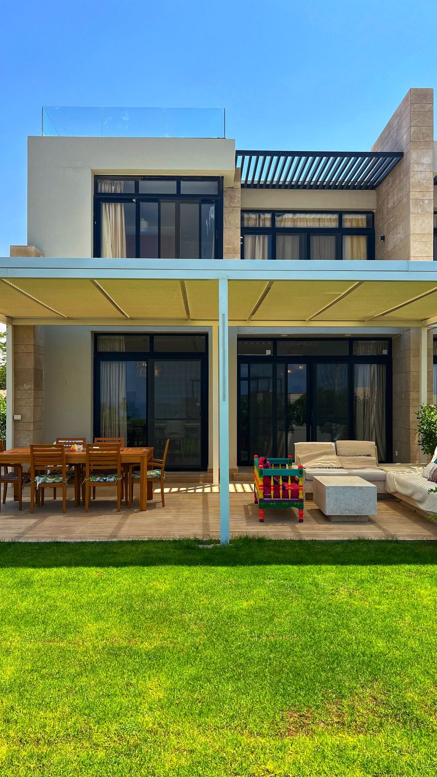 From the owner directly Almaza Bay / chalet for rent / beach town First Floor ( 3 bedrooms + 3 Bathrooms ) - 1st Bedroom with queen bed with private bathroom - 2nd Bedroom with two twin beds - 3rd Bedroom with bunk beds with private bathroom For reservation