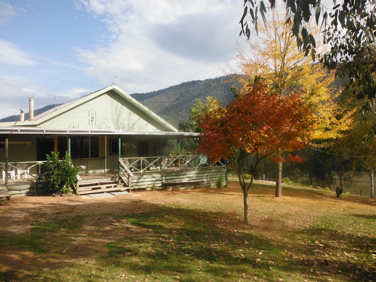 Asume Victoria-aegsete Alpide jalamil, Bright 'i lähedal. Läheduses on kristallselge oja, mis sobib forellipüügiks. Meie väike talu koosneb veistest, kanadest, kahest koerast, kastanitest ja mustikatest ning rikkalikust Austraalia elusloodusest. Maamaja(voodi) on iseseisev ja privaatne, seal on üks kahekohaline ja kaks ühekohalist voodit ning väga suur varjuline aed grillimise ja lehtlaga. Lemmikloomad on teretulnud. Tervitame tungivalt rahvusvahelisi reisijaid sellesse ilusasse piirkonda.