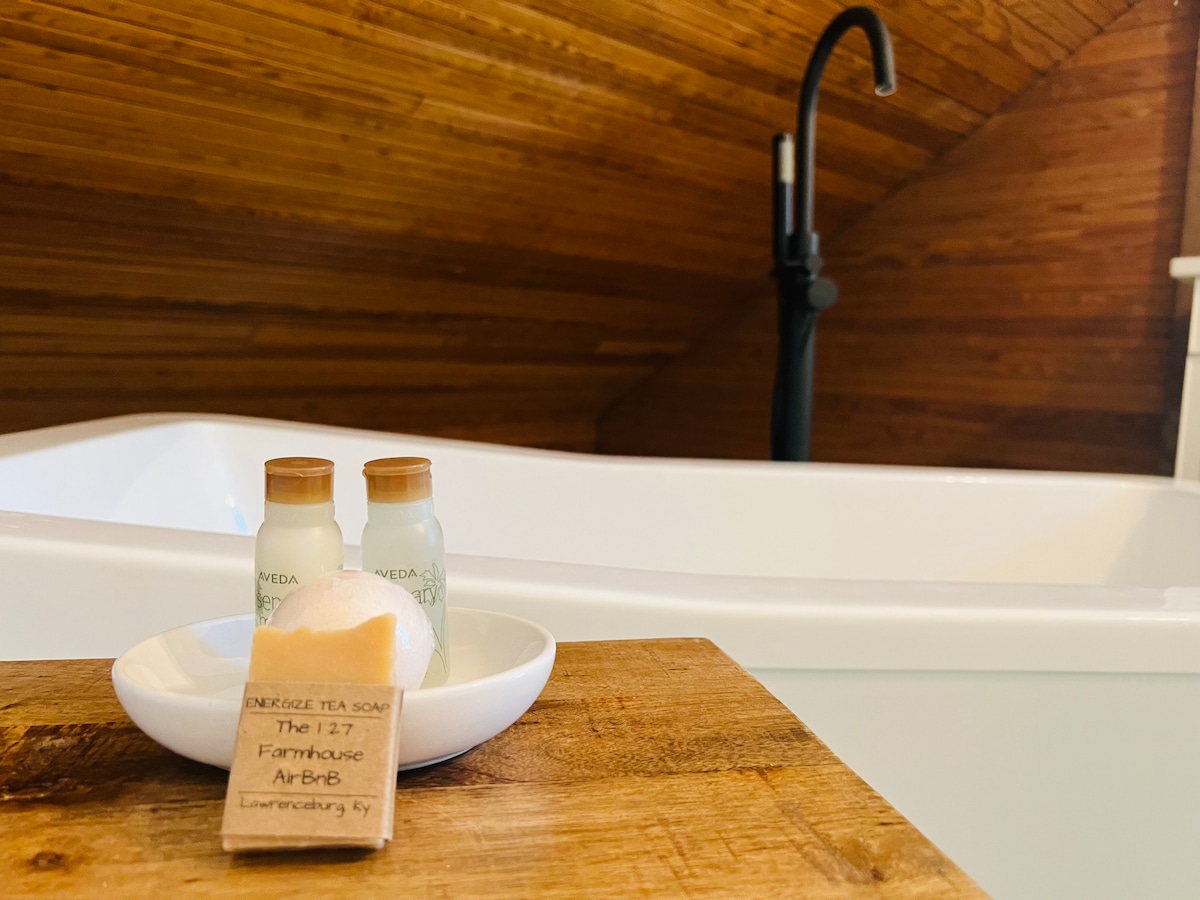 Privaatselt paigutatud üle 5 metsaga kaetud aakri ja tahtlikult kureeritud sinu peatumiseks. Saa juurdepääs vaiksele, sukeldu loodusesse, toeta oma noorendamist ja tutvusta oma loomingulist voolu. Mugavuste hulka kuuluvad kohapealne matkarada, kunstnike töökoht, puuküttega pliit, kaetud veranda, võrkkiiged, väljas söögituba, lõkkekoht, kuu aed, soolavee mullivann ja välidušš. Beaveri järve lähedal ja asub Bourbon Trailil, vaid mõne minuti kaugusel Metsikust Türgist ja Four Roses 'i piiritusetehast. (Märkus: ainult 18+)
