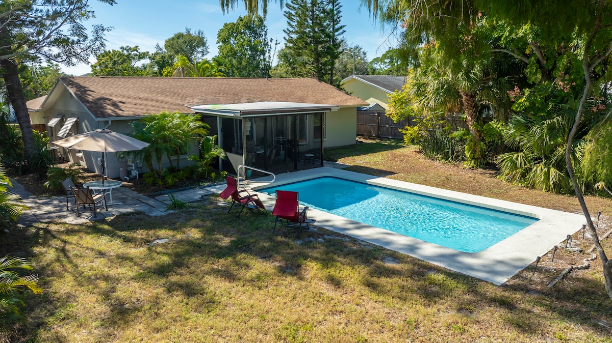 Tere tulemast varjulisse kohta! See võluv peresõbralik bangalo on vaikne ja privaatne oaas kesklinna südames. Siin oled kõigi piirkonna randade lähedal, sealhulgas maailmakuulus Siesta Key, mida Trip Advisor on hinnanud #1 rannaks USAs, SRQ lennujaam, golfiväljakud, Legacy Trail, UTC kaubanduskeskus, Mote 'i akvaarium, Bayfront Marina, The Bay park, St. Armands Circle, Robarts Arena, Ed Smithi staadioni keedukoolituskoht Baltimore Orioles' is ja Sarasota kesklinna restoranid, tegevused ja ööelu.