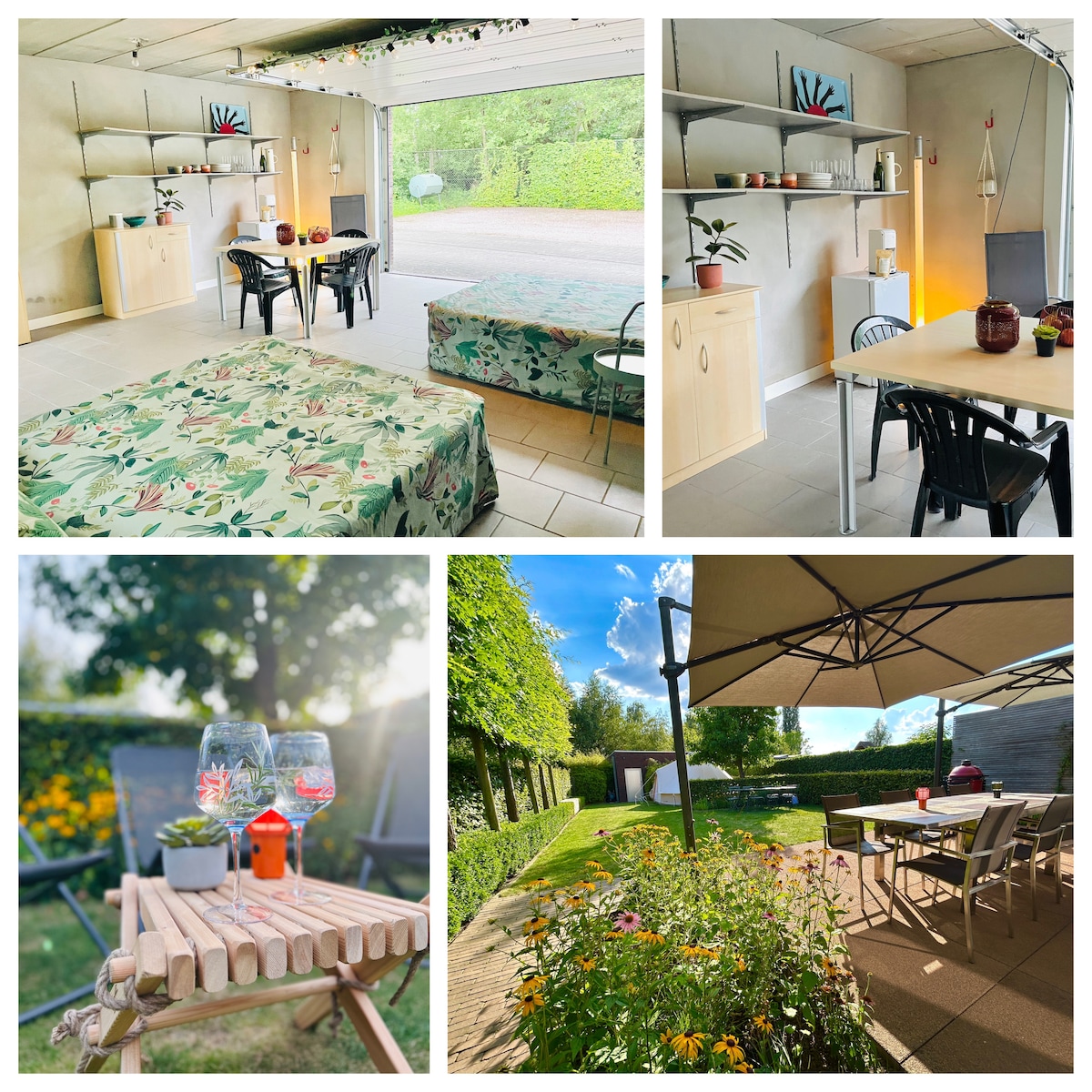 Selles keskses ja rohelises majutuskohas on esimesel korrusel ruumi kahele inimesele ning koer ja/või väike laps. Kõrvuti on kaks laia üheinimesevoodit, väike salong ja avar laud koos toiduvalmistamisnurgaga. Võib lisada beebivoodi. Duširuumis on ka lavabo ja tualett. Väljas on avar lauaga privaatne terrass. Põhjus on suletud ja koerale mugav. Rong ja buss viivad sind otse Brüssel ja Antwerpen, jaam lähedal.