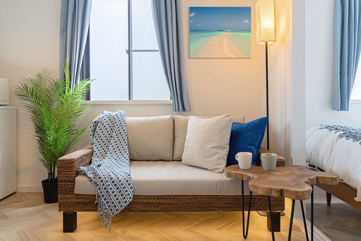 アジアンリゾート|2Sertaダブルベッド|ラタンソファ|浅草11分|成田44分|羽田56分|26㎡