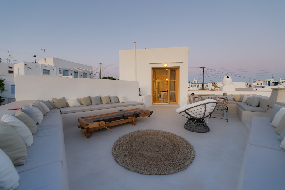 Ideaalne baas saarte avastamiseks, ööeluks ja meelelahutuseks, mis asub elava Apolloniast meetri kaugusel. Asub oma keskses naabruskonnas, mõne sammu kaugusel traditsioonilise sillutatud tee algusest Ano Petali külla. Selle 1900. aasta restaureeritud villa ülemises majas on kaks kahekohalist magamistuba, üks privaatse vannitoa ja teise vannitoaga, täiuslikult varustatud ja stiilne köök, väike elutuba ning hämmastav veranda veini, kokteilide ja hämmastavate õhtusöökide jaoks.