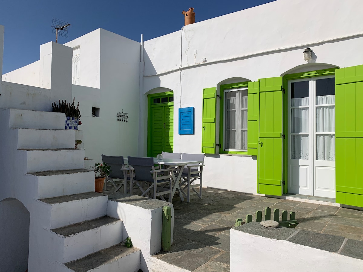 Welcome to relax in our traditional, stone made, calm, stylish cottage. You will enjoy an unforgettable vacation in a countryside house offering panoramic view , sea view, fruit trees, plants and vines in a 1100 m2 garden, only 7-8 mins walking from the centre of the capital Apollonia. Nearest restaurant is about 150 metres away. The couple of owners living in the same 1100 m2 yard, with extensive travel experience in all over the world, will offer you the famous Greek traditional hospitality.