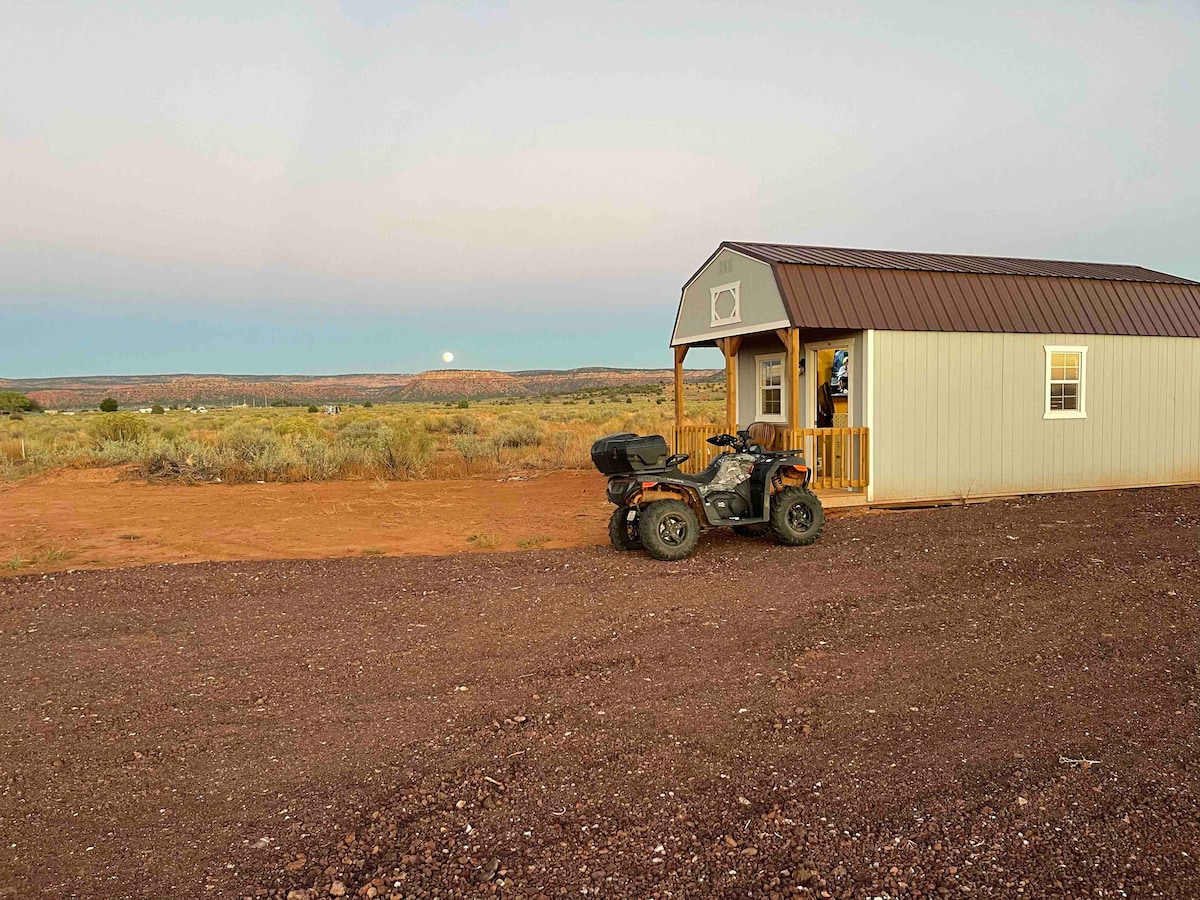 Our cabin is the perfect home base for Zion, Bryce Canyon & Grand Canyon National Parks & those visiting Page,AZ & Kanab, UT. Front porch views of the red-rock canyons make mornings here magical, providing plenty of options for world-class hiking, mountain biking, and ATV trails. Wall AC/Heating Unit, Fiber Internet, Smart TV, Full Sized Kitchenette with mini-fridge, Queen bed upstairs & a pull out Full downstairs, sleeps up to 4