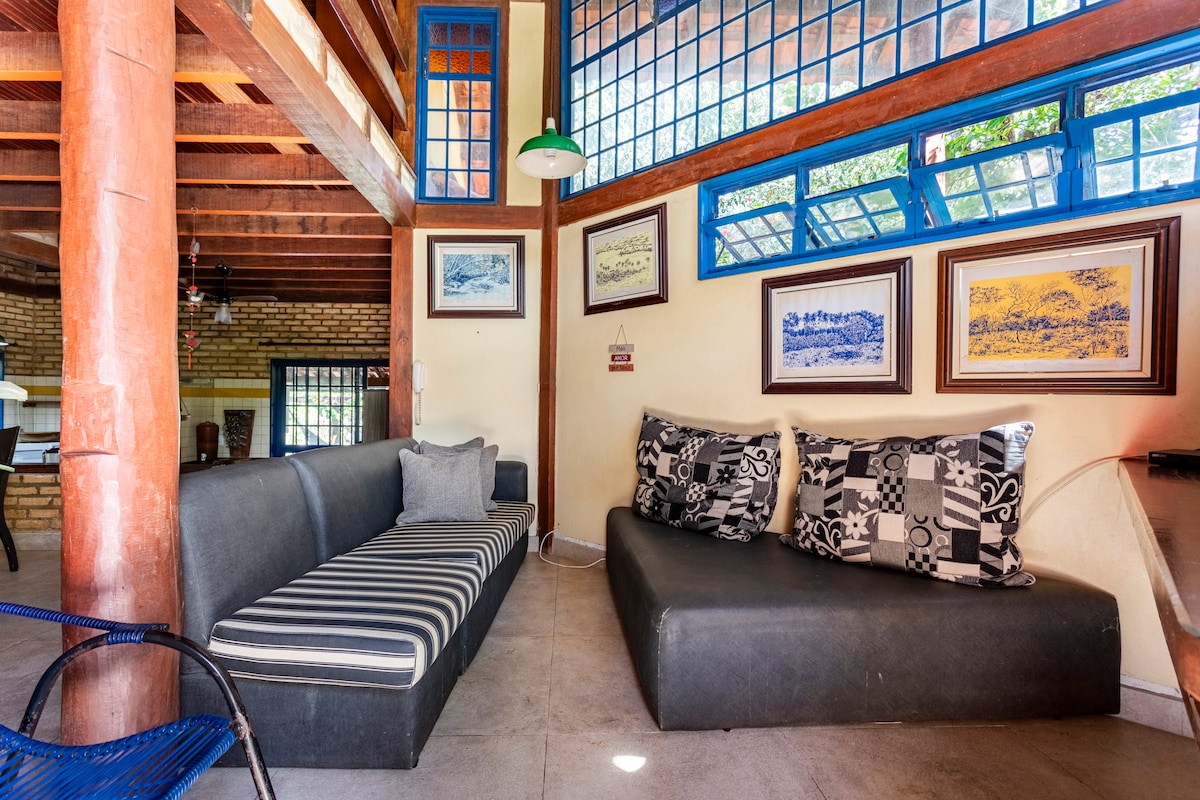 Coqueirão talu asub Pirenópolise ristikust 10 km kaugusel (8,5 km asfaldi ja 1,2 km mullateed). JÄLGI WAZE 'I VÕI GOOGLE MAPSI. See on hästi metsastatud koht looduse keskel ja väga hubane. Lai vaba aeg, elutoaga rõdu, täisköök, veinikelder, 42-tolline taevaga teler. Aurusaun, päikeseküttega bassein, söegrill, välikamin ja jalgpalli-/võrkpalliväljak. Majutuskoht on perele eksklusiivne ja mahutab mugavalt 12 inimest