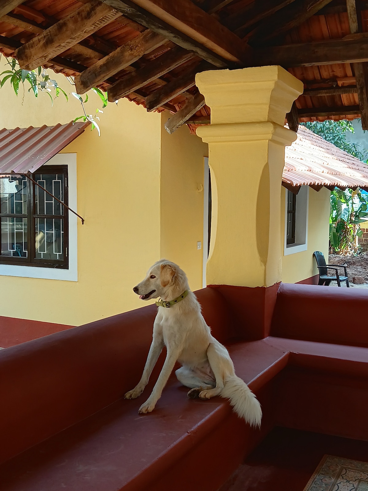 Mediteerimine, vaimne rahulikkus ja selgus olid selle ilusa ruumi loomisel põhirõhk. Kuuskalises stiilis ehitatud majutuskoht on koht, mis rahustab, rahustab ja värskendab kogu oma olemist. See ruum on igast küljest ümbritsetud vanade Goani stiilis vitraažakendega, kust avaneb vaade aiale. See ruum on ideaalne, kui soovid laadida ja noorendada. Korraldasin ka töölaua. Olen kujundanud väga zen-stiilis avatud planeeringuga aiaköögi, mille taustaks on rabav bambusest soon.