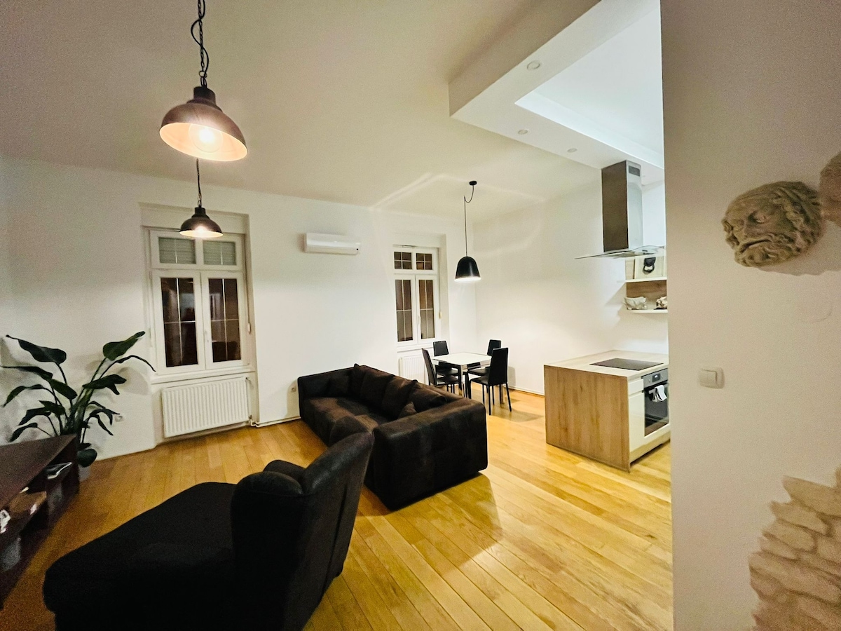 See 60 m2 suurune korter asub ajaloolises hoones, kus on 5 m pikkune rõdu, kust avaneb vaade tänavatele, on uhiuus renoveeritud. See on stiilne, luksuslik, suur elutuba, kus on täielikult varustatud stiilne köök, kaks suurt magamistuba ja suurepärane vannituba. See asub vaid mõne sammu kaugusel lilleväljakust ning selle paljudest baaridest ja restoranidest ning asub otse Zagrebi jalakäijate tsooni südames. SEE KORTER ON 3. KORRUS ILMA LIFTITA.
