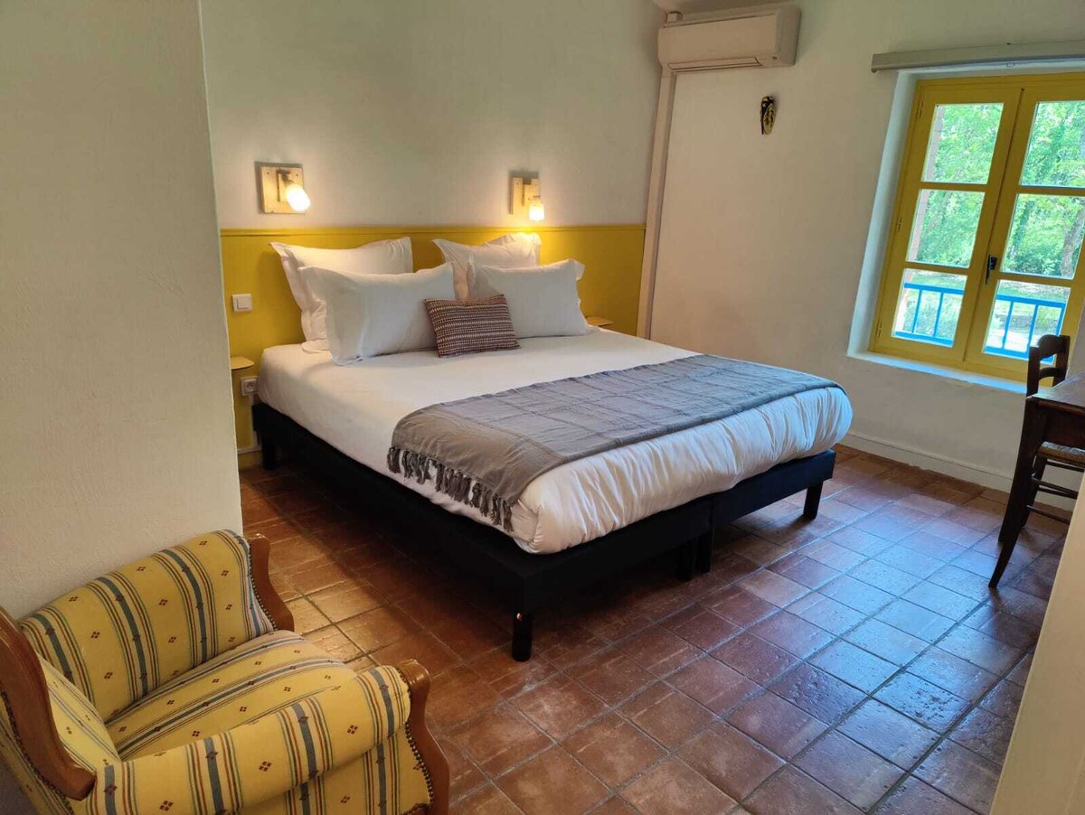 See 15. sajandist pärit vana küün oli suur! See pindalaga 75 ruutmeetrit koosneb suurest elutoast avatud köögiga, elutoast diivanvoodiga, puidust pliidiga... ja ülakorrusel suurest vannitoaga magamistoast. Vajadusel väike diivanvoodi magamistoas Vaated aedadele ja basseinile on sul otsene juurdepääs laimipuu esplanaadile väljas lõunasöögiks ja ülejäänud aedadele, kust pääseb otse metsa .
