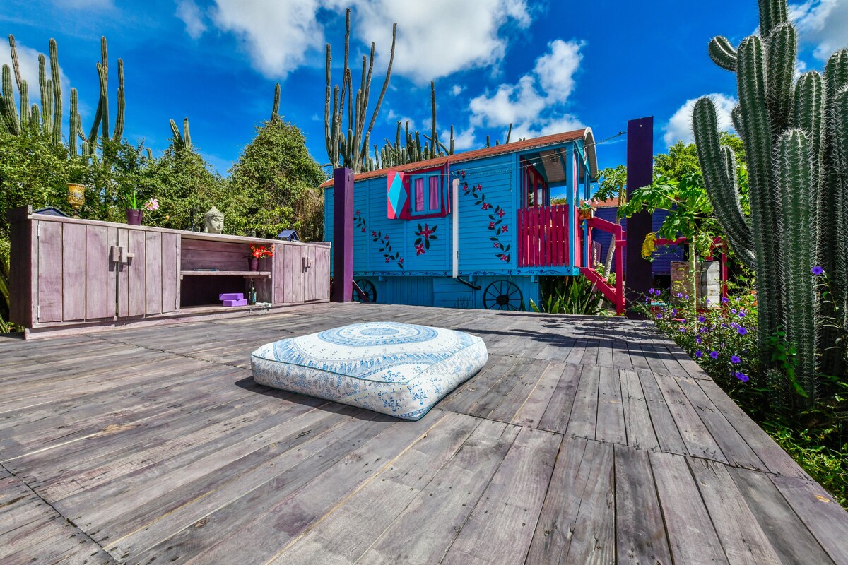 Tere tulemast Mammaloe's Arubasse – värvilisse boheemlaslikku kodumajutusasutusse, kus on 8 ainulaadset majutuskohta: 3 mustlasvagunit, 1 maamaja, 1 korter ja 3 luksustuba. Broneeri kogu majutuskoht grupile või vaid mõned toad. Igapäevane hommikusöök hinna sees. Naudi rahu, loodust, troopilist aeda võrkkiigega ja pingevaba õhkkonda vaid mõne minuti kaugusel rannast. Ideaalne puhkuseks, peredele või loomingulisteks väljasõitudeks.