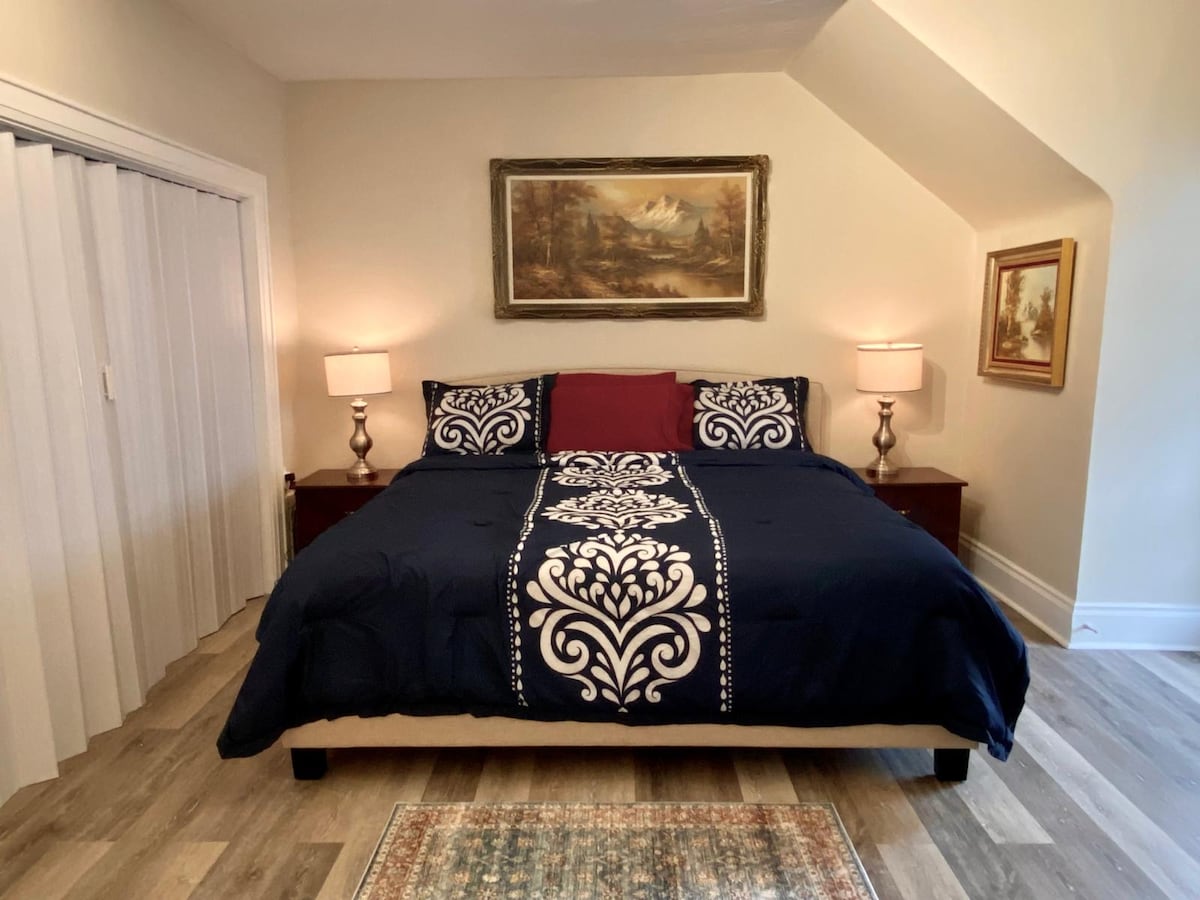 Lõõgastu selles rahulikus ja stiilses majutuskohas. 10-minutilise jalutuskäigu kaugusel ajaloost! 15-minutilise jalutuskäigu kaugusel rannast! Komplektis on kööginurk, 3-osaline vannituba ja ülakorruse voodi (jälgi oma pead - 5'3"). Ülakorrusel on lai kaheinimesevoodi ja allkorrusel Spaze 'i väljatõmmatav diivanvoodi. Ruumi ümardamine on teler, kiire internet ja minisplit kanaliteta vahelduvvoolu-/soojuspump. Voodipesu ja rätikud on olemas. Pane tähele järske treppe ja madalat ruumi loftis. Operaatori registreerimisnumber STR-2109-FMGHHC.