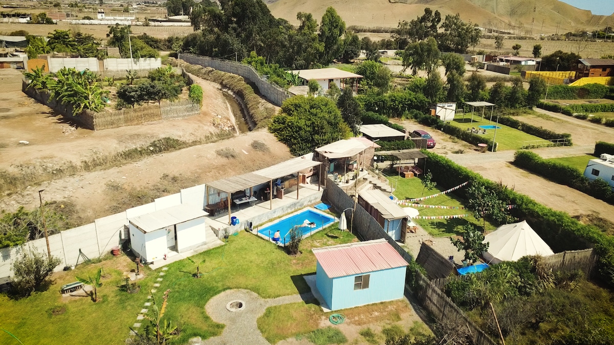 Naudi ainulaadset puhkust meie maamajas Cañete 'is, mis on ideaalne puhkekoht peredele ja sõprade rühmadele, kes igatsevad ühenduse katkemist, seiklusi ja sidet loodusega. Sukeldu parvetamise põnevusse Lunahuanás või Cerro Azuli randades või lihtsalt lõõgastu meie basseini ja mullivanni privaatsuses. Valmista oma lemmikroogad täielikult varustatud köögis, korralda aias grill või esita kõigile lauamängud. WiFi abil oled kodus!