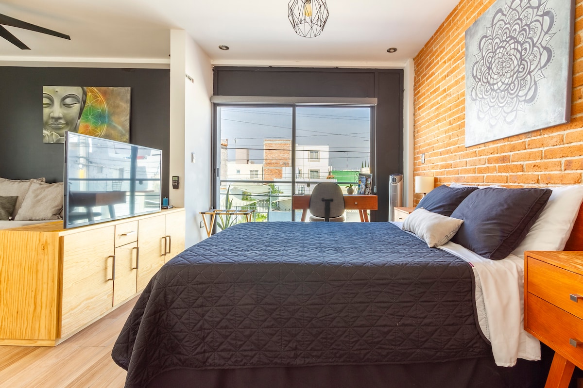 Departamento con cama matrimonial, cobija calientita y baño completo recién renovado, cuenta con una pequeña cocineta y frigobar, una televisión e internet. Incluyó cafetera, café y agua natural. tendrás caminando muchos restaurantes y cafeterías. ATENCION: • No cuenta con estacionamiento • No se puede fumar. • No cuenta con estufa (Son parrillas eléctricas) • No cuenta con aire acondicionado (Tiene ventilador) • No se pueden hacer fiestas/reuniones. • No se puede entregar antes de las 3 pm.