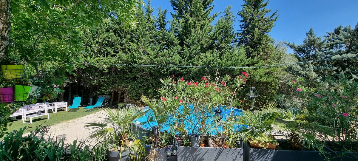Ilus konditsioneeriga arhitektmaja 2200m ² metsaplatsil garrigue-keskkonnas. Vaikne asukoht Aubais 'küla ääres, 30 minuti kaugusel randadest, 10 minuti kaugusel võluvast keskaegsest Sommières' i linnast, 30 minuti kaugusel Montpellierist ja Nîmesest. 11,5 m pikkune soojendusega lõpmatusbassein. 6 päevitustooli, 3 väliala, basseinihoone koos grilliga. Avarate ruumide ja sooja zen-õhustikuga interjöör, mis on inspireeritud meie reisidest.