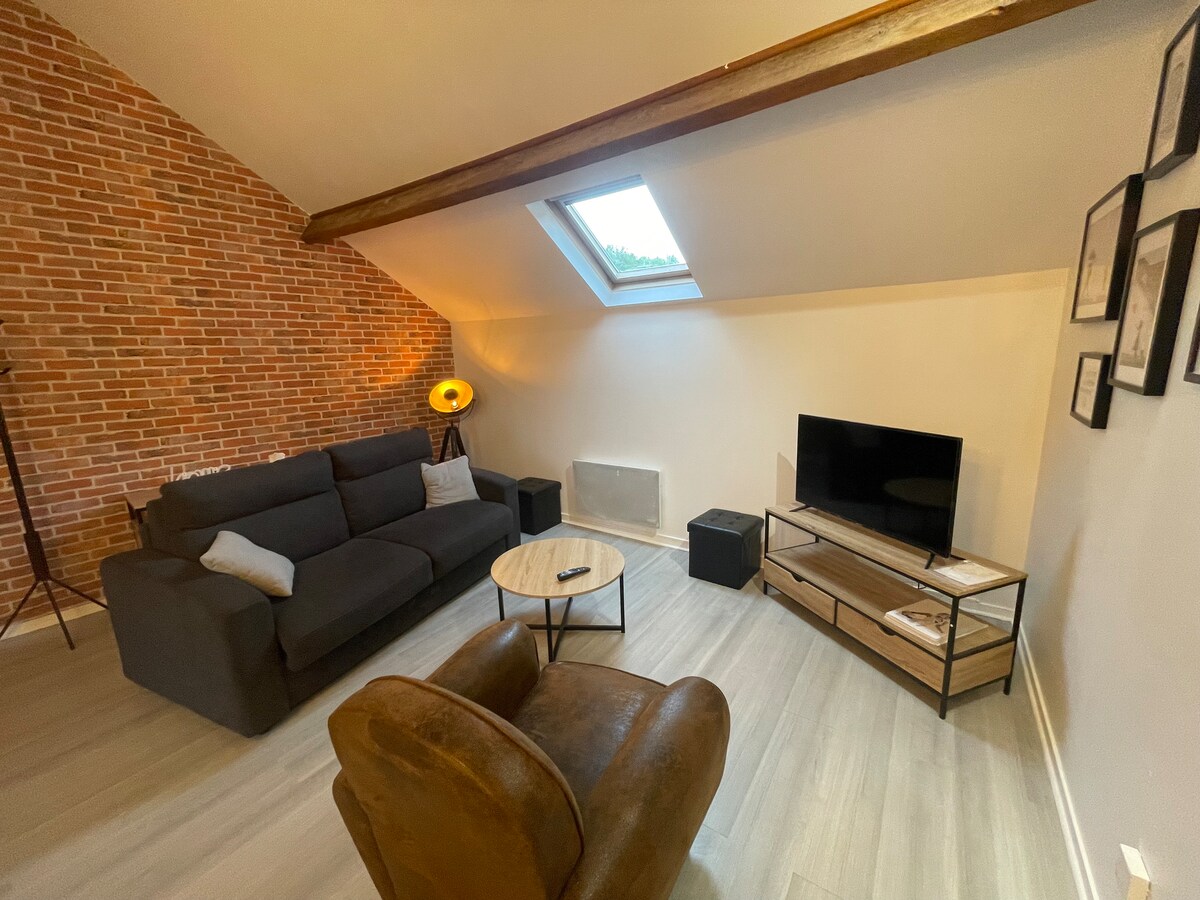 Tule ja peatu "La Grange 'is", mis asub Auvers-sur-Oise kesklinna lähedal, Vexini piirkondliku looduspargi kommuun. See vana iseseisev küün on täielikult renoveeritud, et pakkuda sulle kaasaegset mugavust. See koosneb elutoast, kus on kabriolettne nurgadiivan, teler, tasuta wifi, tasuta wifi, täielikult varustatud köök, vannituba koos dušiga, magamistoast kaheinimesevoodiga mezzanine 'il, väikesest terrassist ja privaatsest parkimisest.
