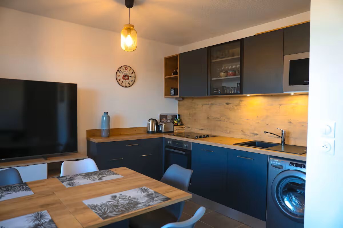 See võluv korter T2 asub rahulikus piirkonnas, mitte kaugel linna südamest transpordiga. See sobib suurepäraselt reisijatele, kes otsivad mugavust. - Heledus: aknad ujutavad ruumi üle loomuliku valgusega, luues külalislahke atmosfääri. - Mugavused: leiad kõik, et nautida mugavat peatumist: kirjutuslaud, pesumasin, kohvimasin... - Asukoht: majutuskoht asub ühistranspordi jalamil ja 10-15 minuti kaugusel kesklinnast.
