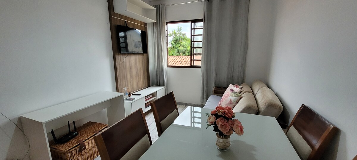 Bairro Sta Monica-Pampulha.B H/MG -Kitnet com área total de 12 m²/6 km da UFMG, Estádio Mineirão,3 km das Faculdades Faminas e Alfenas,2 km da Anhanguera,px shoppings c/cama de casal,cozinha,fogão cooktop elétrico de indução,geladeira frigobar 120 litros,banheiro grande com box blindex,bom chuveiro,com água quente,mesa de estudos e alimentação,tv Smart,ventilador Wi Fi 500 megas.Fornecemos roupas de cama,cobertor e toalhas.Px ao comércio,bancos e farmácias.Estac gratuito,com portão eletrônico.