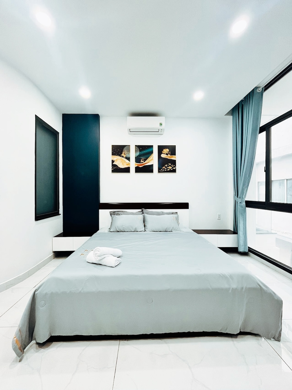 Moodne ühe magamistoaga ✨ korter 6 – vaatamisväärsuse 81 kõrval ✨ Vietnami kõrgeima hoone Landmark 81 kõrval asuv korter pakub kaasaegset, hubast ja mugavat eluruumi: • 🛏 1 avar magamistuba, pehme voodi, viietärniline tekki, suur valgusküllane aken. • Moodne puhas🚿 vannituba, varustatud veesoojendiga. • Ümbritsevad🌳 ruumid: Vinhomes Central Park, bassein, jõusaal, supermarket, restoran, kohvik. • 🚗 Mugav transport 1. linnaosa kesklinna vaid mõne minuti kaugusel.