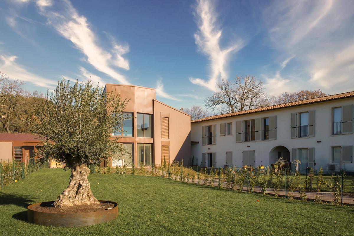 Provence 'i stiilis korter, mida ümbritsevad viinamarjaistandus ja oliivipuud. Naudid maapiirkonna rahu 10 km kaugusel linnast ja 4 kiirteest. Akorni ja kägu laulmine on elutoa heliriba, samal ajal kui metshirv oliivipuude vahel põleb. Sisaldab Itaalia põhihommikusööki (kohv, tee, piim, küpsised jne). Kui eelistad rikkalikumat ja serveeritud hommikusööki laua ääres, on hind 15 € inimese kohta (10 € 5-15 aastat, tasuta vähem kui 5 aastat). Wallbox EV on saadaval.