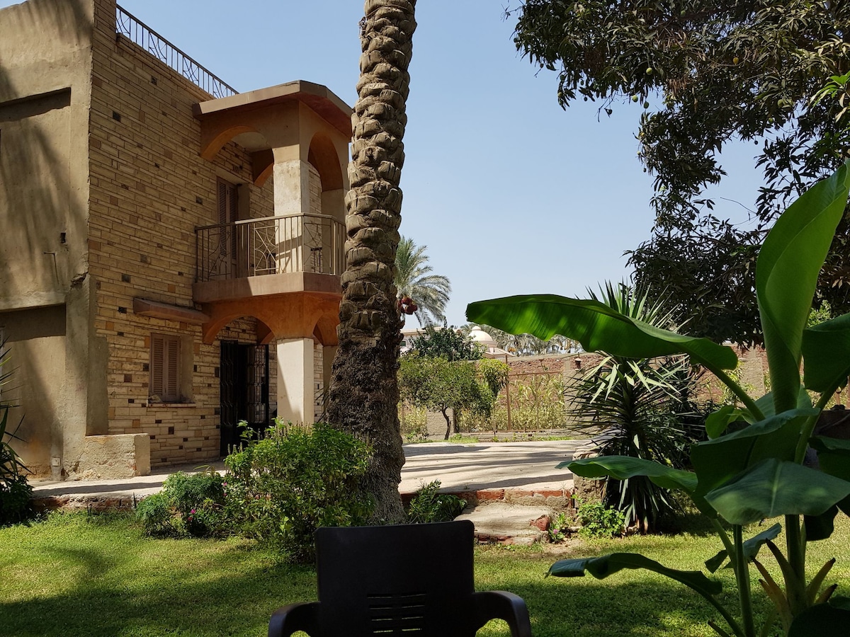 Suurepärane, äsja valmis 4 magamistoaga villa ja 2 magamistoaga külalistemaja, mis asub suures aias koos basseiniga, kõik hingematvate vaadetega Abu Sir Püramiididele. See on ideaalne koht perele ja sõpradele puhkamiseks, kuid me ei saa korraldada suuri üritusi, nagu sünnipäevapeod, tegevused ja pulmad.